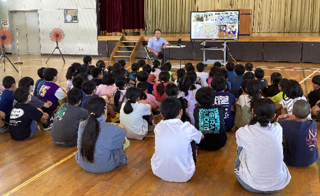 今日は、吉島地区の民生児童委員の皆様が学校を訪問し、