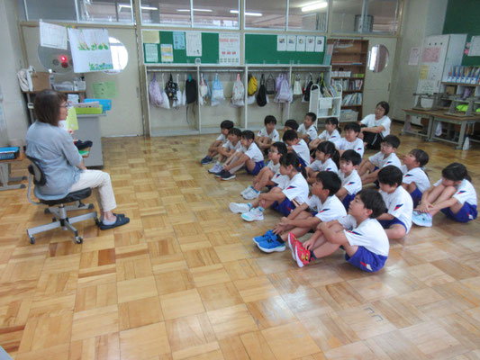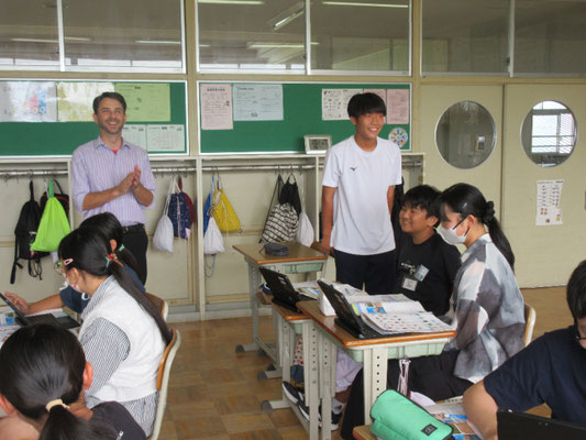 今日は、中学校の先生が様子を見にいらっしゃいました。