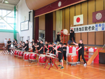 吉島地区の敬老会・賀寿伝達式が本校体育館で開催されました。
