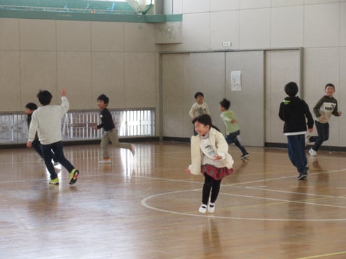 体育館では、元気いっぱいに鬼ごっこをしていました。