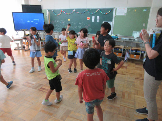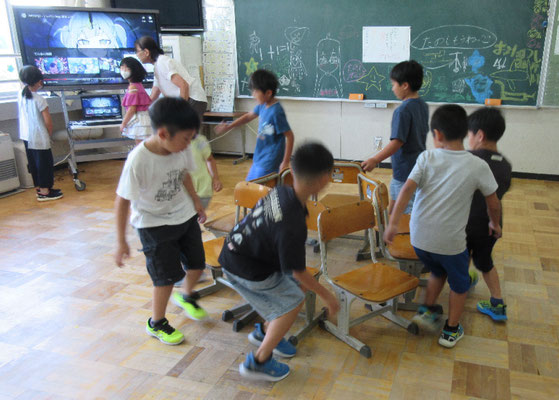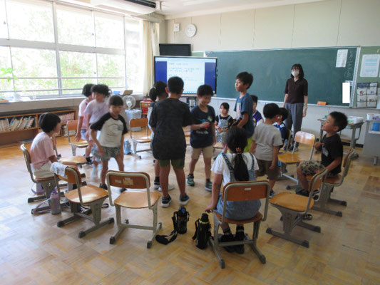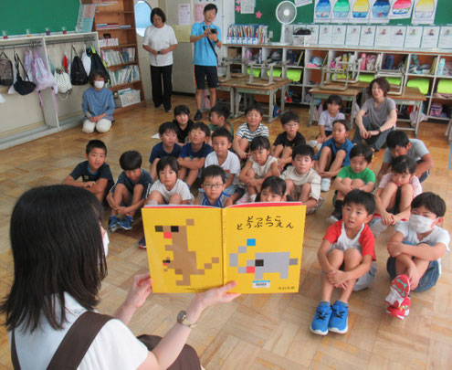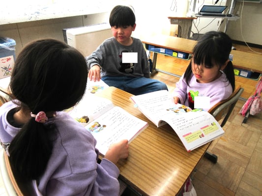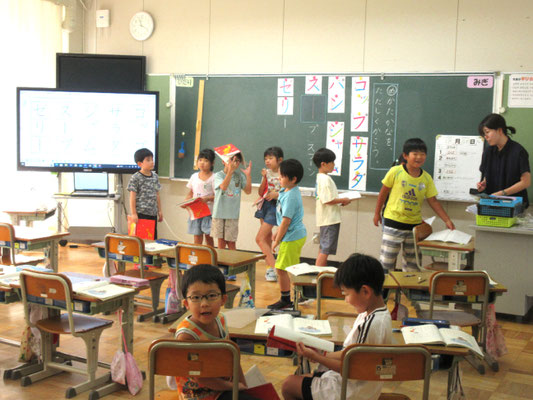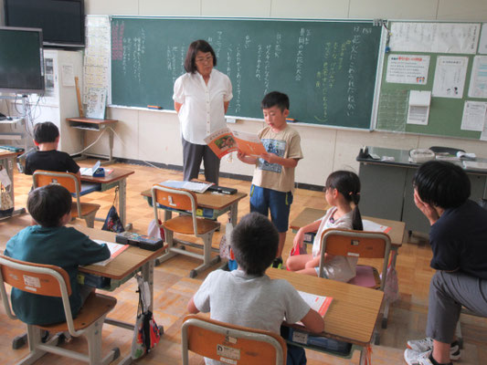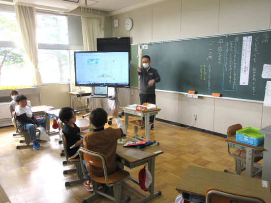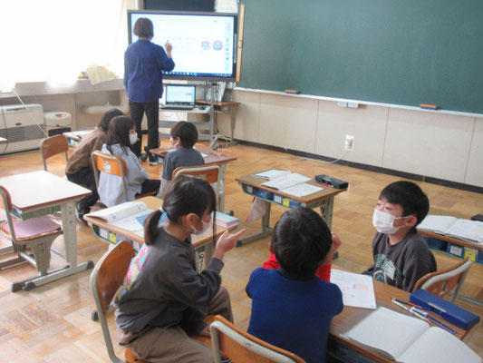 1年生は、国語「くじらぐも」の音読をやっていました。