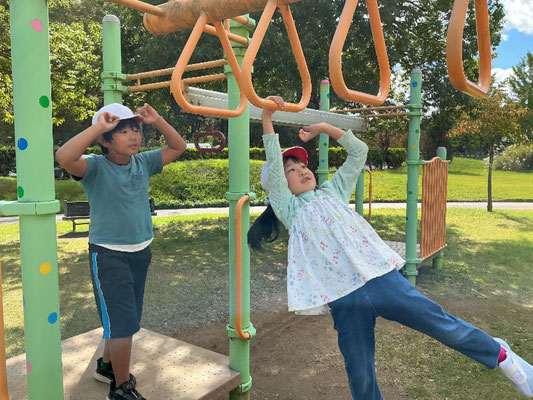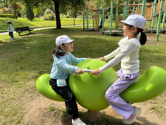 のびのびと遊び、どんぐりなどの木の実を拾いました。