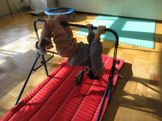 鉄棒運動で「豚の丸焼き」を見せてくれました。