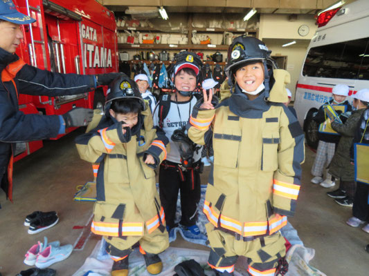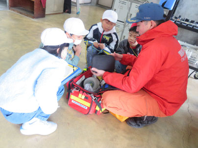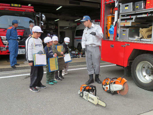消防車に常備されているたくさんの道具を見せてもらったり、