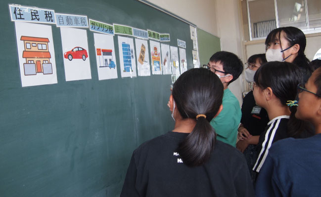 子どもたちは、税金の種類や税金の使い道などを学びました。