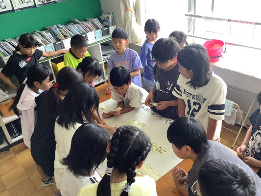 5年生は、国語の学習で、みんなが作った読みの課題を