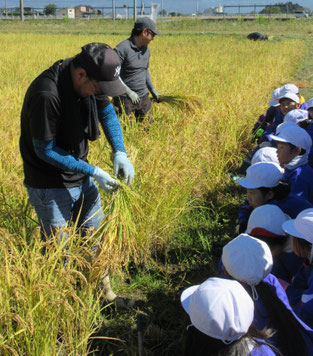 まず、JA青年部の高橋 光也 様より、稲の刈り方を教えていただきました。