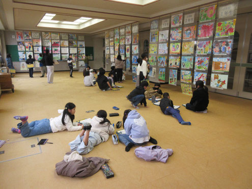 川西町の小学生・中学生の絵画展が吉島小に来ています。