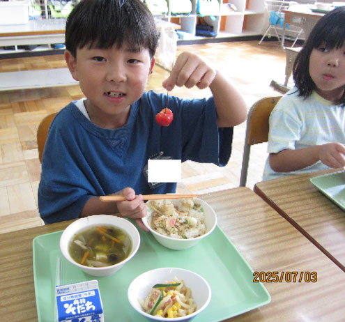 今日の給食に、さくらんぼ「紅王」がつきました。