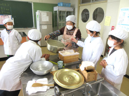 3年生が、総合的な学習の時間に育てた紅大豆を使って、