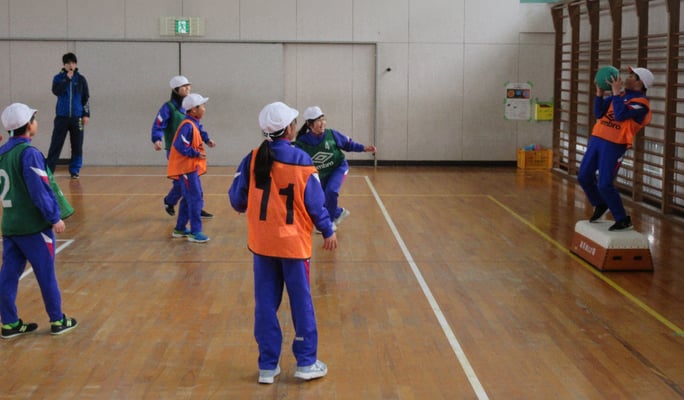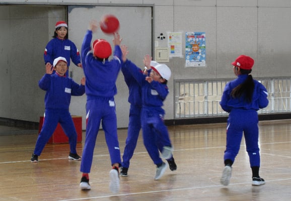 3年生と4年生は合同体育で、ポートボールのゲームをしていました。