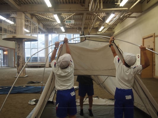 動します。実行委員会は、スローガンの看板づくりと「がんばりの木」を作っていました。「がんばりの木」には、頑張っている仲間