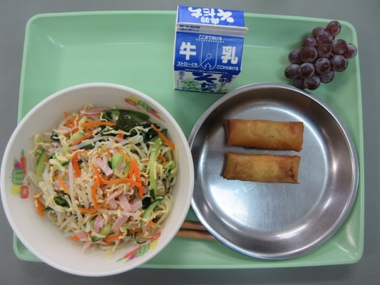 今日の給食に、川西町産のシャインマスカットがつきました。
