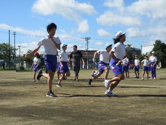今月29日(水)に行う予定の町小学校陸上競技大会に向け、高学年が合同で体育をしていました。