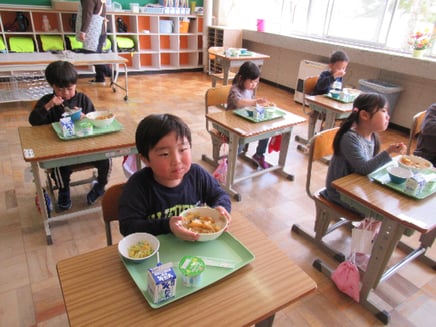 した。私は、給食の時間の各クラスの自由な感じが好きなんです。「こどもの日」が近いということで、かしわ餅がつきました。