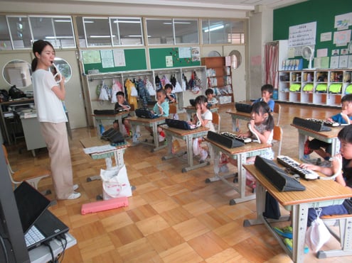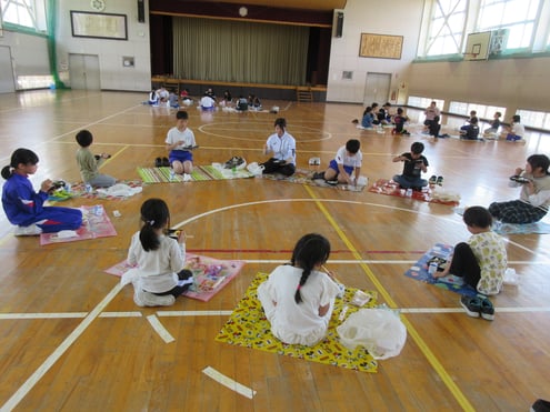 山々の木々も緑を増してきました。ゴールデンウィークの中日、子どもたちは元気いっぱい学校生活を送っています。