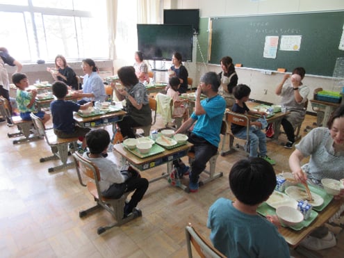 今日は、町の食育推進計画を策定する委員の皆さまも参観されました。