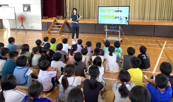 子どもたちに、今の自分のあいさつは何点?と問いかけました。